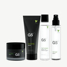 Ce pack inclut l’Eau micellaire G5®, la Brume revitalisante G5®, la Crème régénérante G5® pour le visage et la Lotion réparatrice G5® pour le corps.
