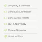 Conçu pour ceux ayant des modes de vie actifs ou en quête d'un bien-être optimal, la gamme G5® Wellbeing offre des formulations scientifiquement prouvées pour prendre soin de soi. En stimulant le renouvellement cellulaire et la production de collagène de la peau et des articulations, tout en améliorant la santé cardiaque et immunitaire, ce pack tout-en-un favorise l'ensemble de votre bien-être.