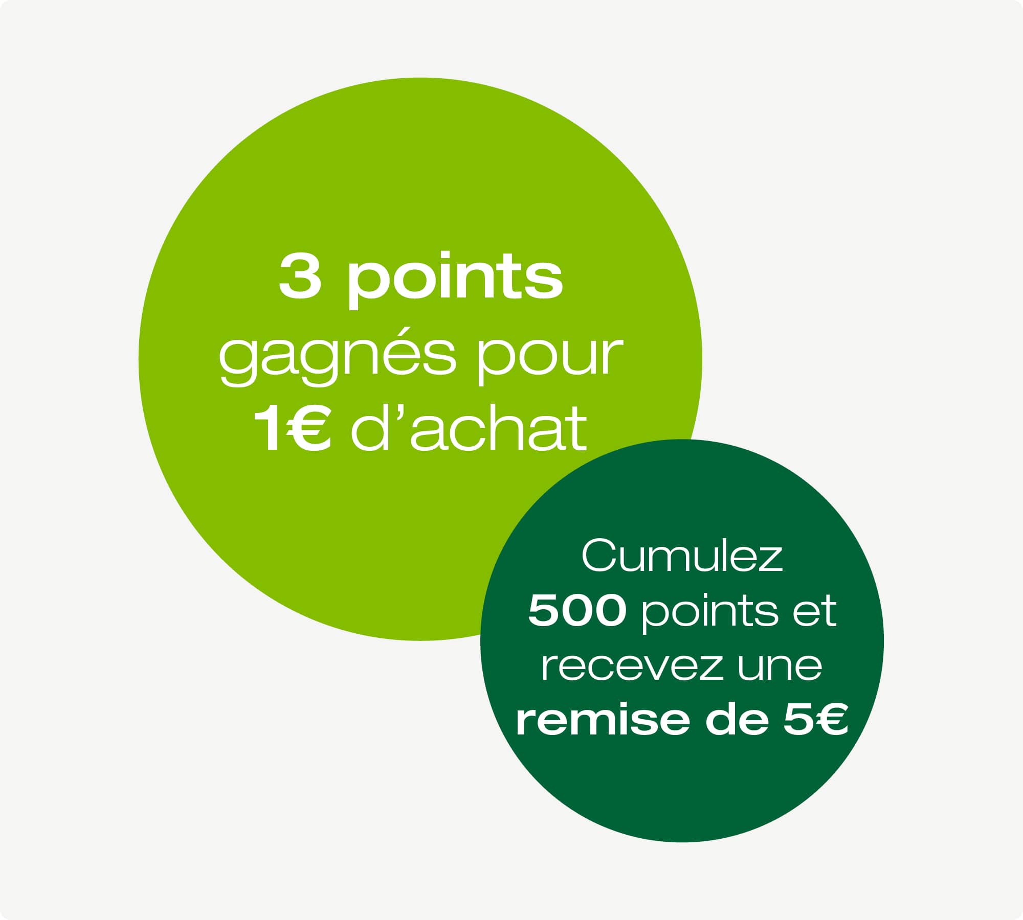 En rejoignant notre programme de fidélité, vous recevrez instantanément 300 points de bienvenue (soit 3,00 € de remise) simplement en vous inscrivant.
