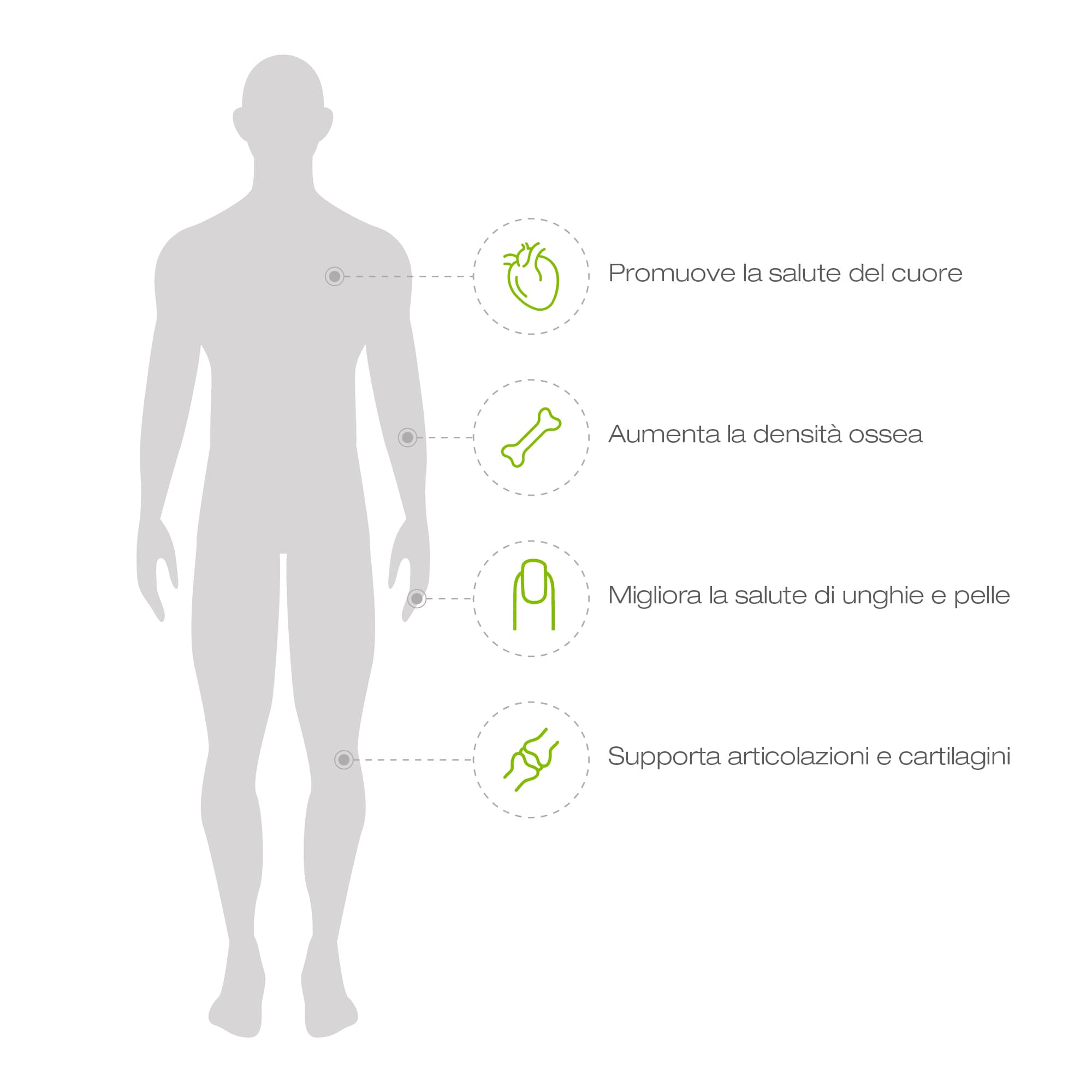 - Salute cardiovascolare: l'MMST supporta la salute cardiovascolare promuovendo la sintesi di collagene ed elastina, essenziali per mantenere l'elasticità e l'integrità dei vasi sanguigni.